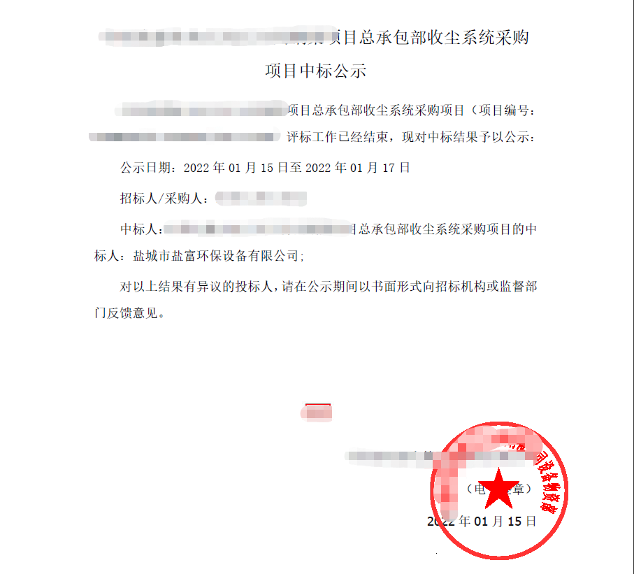• 開(kāi)年傳喜訊,近日從招標(biāo)單位傳來(lái)好消息,鹽富環(huán)保成功中標(biāo)又一大型砂石骨料項(xiàng)目總承包收塵系統(tǒng),實(shí)現(xiàn)開(kāi)門(mén)紅。
